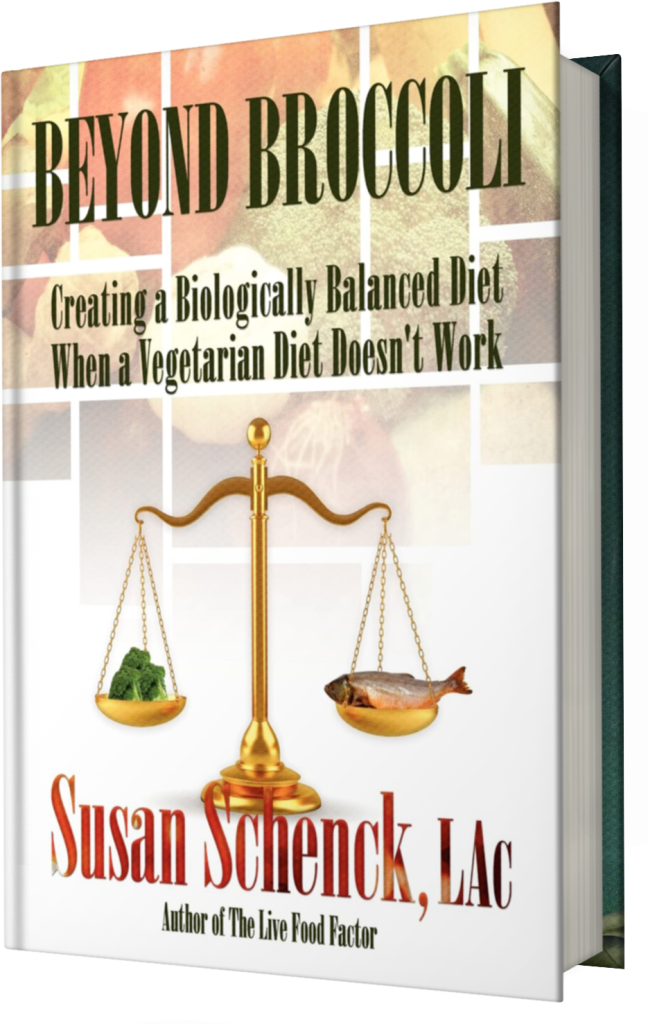 Beyond Broccoli is written by Susan Schenck, who herself was a raw vegan for six years, followed by a year of raw vegetarianism (including raw dairy and eggs), and ending with her returning to raw and lightly cooked meat. “Going raw” proved to have so many benefits that Schenck wrote a 2-time award-winning book about it, The Live Food Factor. But after a few years, she began to exhibit health issues. Her research, spurred on by Dr. Stanley Bass, led her to conclude that it was a deficiency of vital nutrients found fully formed only in animal products that were causing the problems.